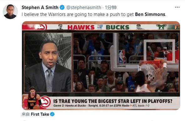 但目前他的交易价值仍不小,A·史密斯认为勇士将会全力追本西蒙斯“里奇-保罗和费城76人谈过了,很显然,他是本-西蒙斯的经纪人,76人试图宣称他们对交易本-西蒙斯不感兴趣。让我来告诉你们,这(76人方面的说辞)是一个该死的谎言,这是一个该死的谎言。我认为金州勇士将会为本-西蒙斯做出努力(推进交易),我不是说它会发生,但已经有人打了电话,事情正在慢慢演变。”