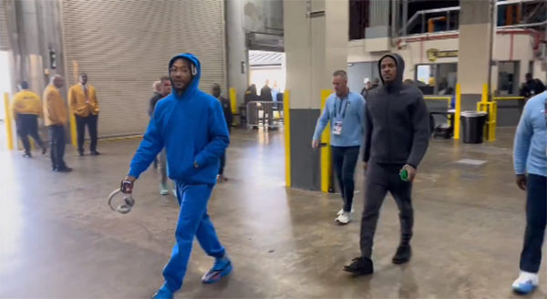 对阵鹈鹕前,灰熊官方晒出众将前往球馆的帅照,还晒出莫兰特的更衣柜以及12号球衣,相当于官宣莫兰特回归;目前莫兰特已经入场——身穿灰色连帽卫衣,边走路边低头刷着手机,跟在罗斯身后走进球馆。