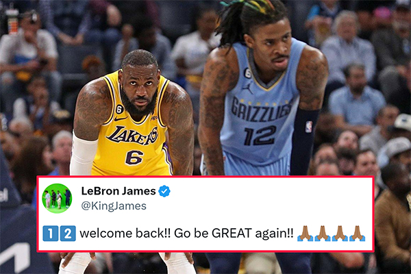 25场禁赛结束,莫兰特终于获准重返赛场;湖人球星詹姆斯发声欢迎莫兰特回归,发推写道:12号,欢迎回归!再次变得出色吧。