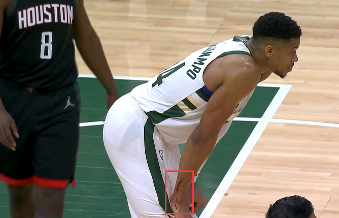 末节,9分40秒,字母哥的手臂被杰夫-格林划伤,血流不止染红战袍并且滴在地板上,字母哥进行了两次紧急治疗才止住血;字母哥重新上场后再次保护篮板,生涯总篮板超越贾巴尔正式成为队史篮板篮板王,全场球迷为字母哥呐喊以及高呼MVP。