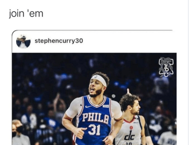 而另一头,和妻子开开心心度假的库里,也没有能逃过其他球队的窥视,即便库里从来没有说自己要离开勇士。近日,费城管理层在社交媒体上对于库里进行了招募,他转发了库里的社交媒体,并写上:加入我们。