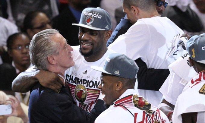 莱利还回忆热火三巨头(詹姆斯、韦德和波什)时期的美好时光。