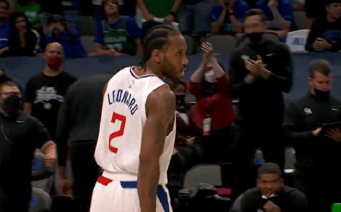 到了第四节,经过短暂休息的莱昂纳德和东契奇几乎同时登场。而这一节,莱昂纳德完全爆发,他单节5中5轰下12分,将自己最终的得分定格在45分。最后3分钟,莱昂纳德连续中投加两记三分球,直接打垮了独行侠。