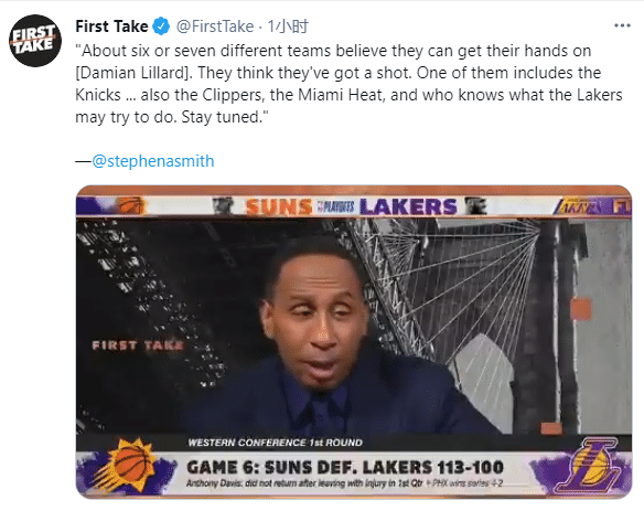 利拉德如此言论引热议,外界认为这是他暗示离队的信号;不久前名嘴A-史密斯在节目中表示:开拓者被淘汰之后,已经有六七支球队准备尝试得到利拉德并且认为他们能够给利拉德找到足够的帮手,这其中就包括尼克斯、快船和热火,谁知道湖人会不会也加入争夺战。