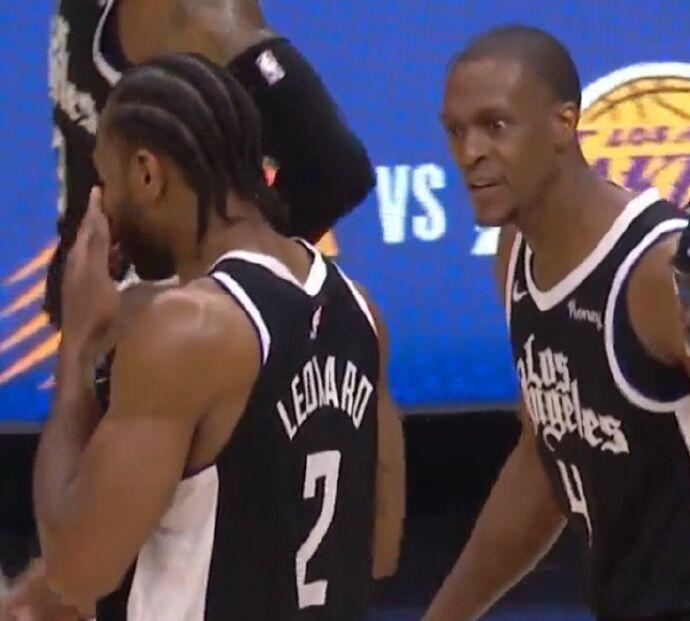 有意思的是当伦纳德强投三分时,上线的隆多做出动作,解说员也表示,隆指导似乎对于伦纳德的这个选择不满意。为什么会出现这样的情况呢?首先,伦纳德没有在第一时间出手已经没有了好机会,而比赛还有7秒的时间,快船队有机会再寻找机会,这样的强投显然在隆指导眼中是不合理的。