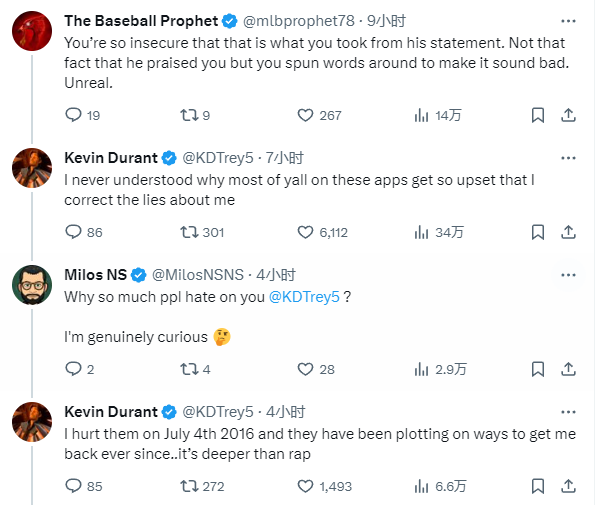 杜兰特回复:我在2016年7月5日伤害了他们,从那以后他们一直在密谋让我回来,这比说唱更深刻。