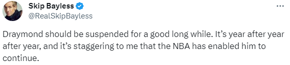 名嘴Skip表示德雷蒙德应该停赛很长一段时间。年复一年,NBA竟然让他继续这样做,这让我感到震惊。