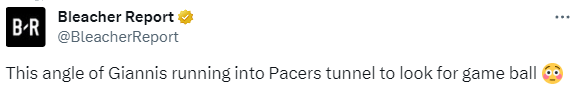 雄鹿复仇步行者,字母哥全场狂砍64分14篮板打出生涯之夜,赛后因为比赛用球,两队发生激烈闹剧,字母哥怒发冲冠,在步行者球员通道中激烈争执,希尔德、特纳等人都表示不要把球给他,由于要球失败,字母哥回到场边后冲着哈利伯顿怒吼:去把这该死的球给我拿来。