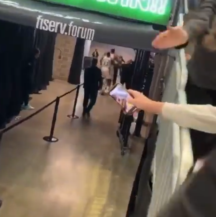 美媒《露天看台》晒出字母哥冲进步行者更衣室的另一角度,字母哥愤怒跑进对手的球员通道,雄鹿助教拽着字母哥的球衣跟着跑,萨纳西斯和一名安保也跟着跑,最终雄鹿助教和萨纳西斯拦住并且安抚字母哥。据报道,最终字母哥拿到了比赛用球。