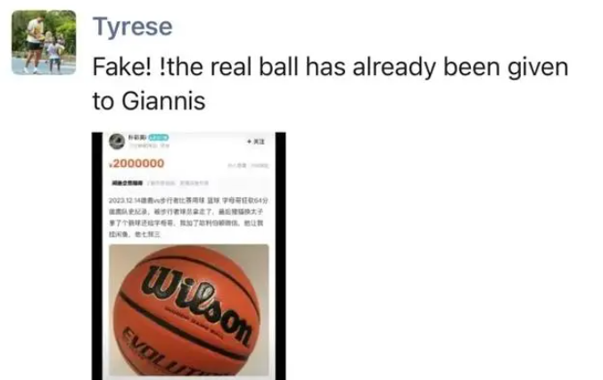 从截图来看,这个球的售价为200万人民币;哈利伯顿在朋友圈晒图并且辟谣写道:假新闻!真正的比赛用球已经给字母哥了。