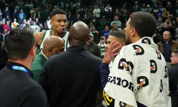 值得一提的是,雄鹿和步行者双方在球员通道激烈争吵,字母哥回到场边后冲着哈利伯顿怒吼:去把这该死的球给我拿来。