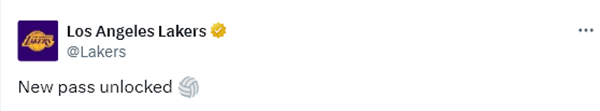 第二节,詹姆斯在转换中快攻得分,强突造犯规两罚全中,一记重拳助攻拉塞尔上篮,如此神来之笔的传球太精彩,湖人官方盛赞老詹解锁传球新招;不过湖人一直落后被压制,上半场打完湖人49-54落后步行者5分。