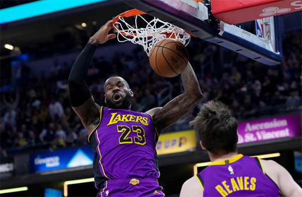 客场对阵步行者,詹姆斯第一节上场8分钟,3投2中拿到4分5篮板3助攻,在反击中空接暴扣,进攻端还助攻浓眉灌篮,不过湖人众将的三分手感糟糕,首节三分9中1,而且单节出现6次失误,其中里夫斯3次和浓眉2次。