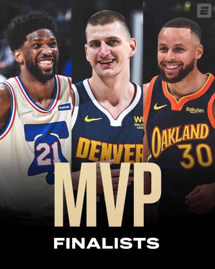 178直播讯 北京时间5月21日,NBA正式官宣本赛季常规赛MVP最终候选名单,约基奇、恩比德和库里三大巨星上榜,这意味着MVP将在他们三人之间诞生;从此前公布的投票结果来看,约基奇依旧是MVP最大热门,他有望击败恩比德和库里当选MVP。