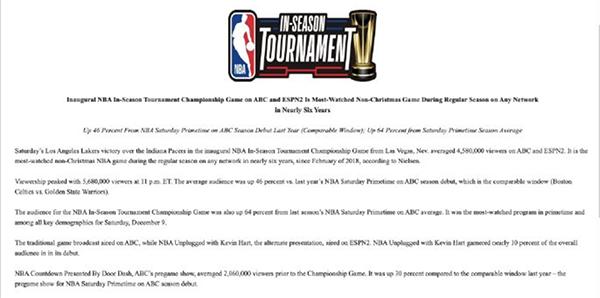 这也是联盟希望看到的,尤其是季中赛是首次举办,确实需要提高影响力、收视率,很显然湖人就是他们的金字招牌。在勇士、凯尔特人这些有巨大粉丝的队伍过早出局之后,湖人的夺冠,在当时就被认为是对NBA联盟最好的结果。当然湖人的表现也很好,他们如愿以偿的获得冠军。