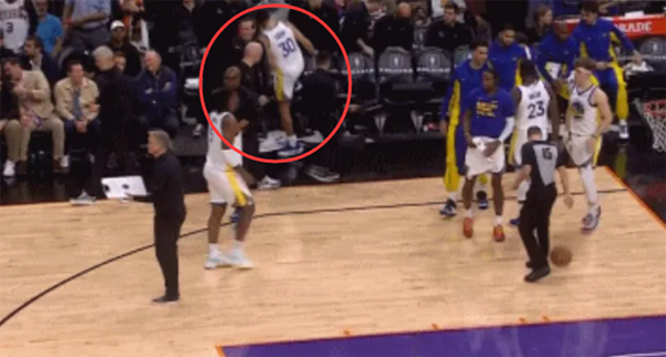 178直播12月13日,NBA常规赛勇士客场大战太阳,第二节勇士被太阳打出16-5攻势,库里上场后被疯狂追分,努尔基奇轰进三分后库里沮丧怒踢椅子,如此一幕太罕见。