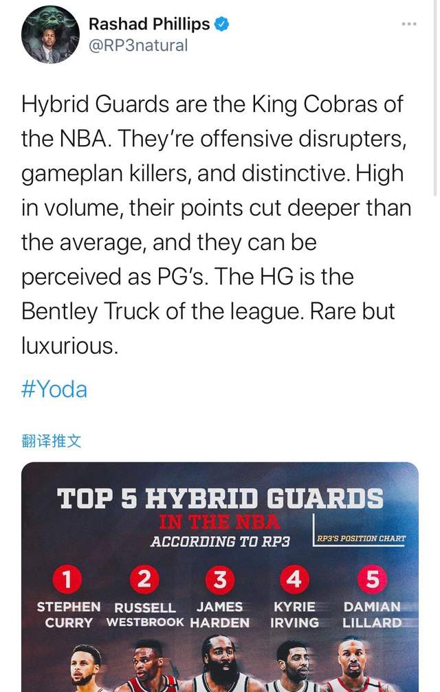 这个专家最后给出的球员则是库里,他认为库里是目前联盟中排名第一的双能卫,而库里确实也应该算是双能卫的创始者。原本库里只是一个控卫,可由于他拥有出色的得分能力,这让他在得分方面超过了所有得分后卫。当库里持球的时候他可以助攻队友,而当他无球在手的时候也可以通过跑动来完成得分。这样的球员十分罕见,后面的球员只是在模仿库里的打法罢了。