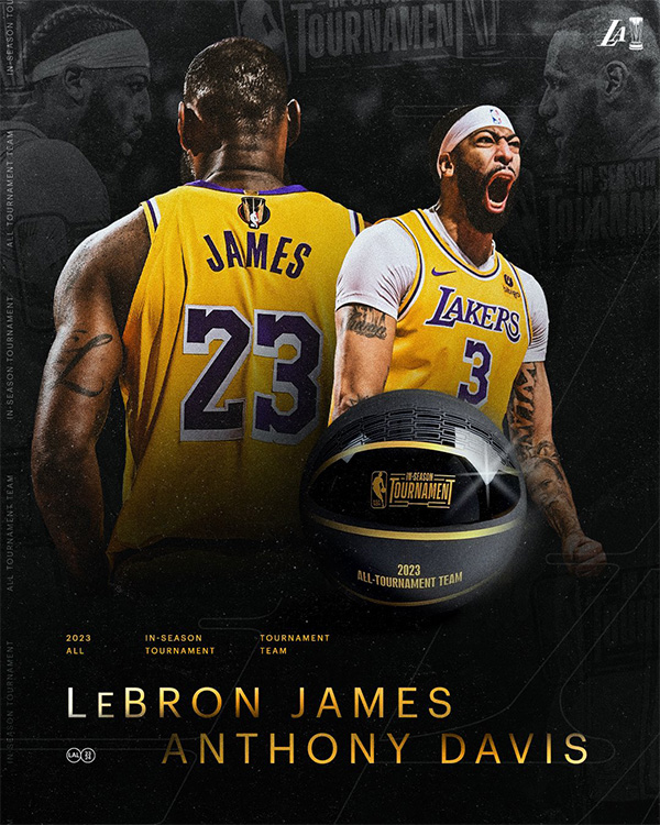 湖人官方祝贺詹姆斯和浓眉入选季中赛最佳阵容,在本届季中赛中,詹姆斯出战全部7场季中赛,场均26.4分8篮板7.6助攻1.6抢断,正负值+112联盟第一;在季中赛中,浓眉场均23.3分14.6篮板3.7助攻1抢断2.9盖帽,抢到102个篮板排在联盟第一,20次盖帽联盟第二,决赛狂砍41分20篮板立大功。