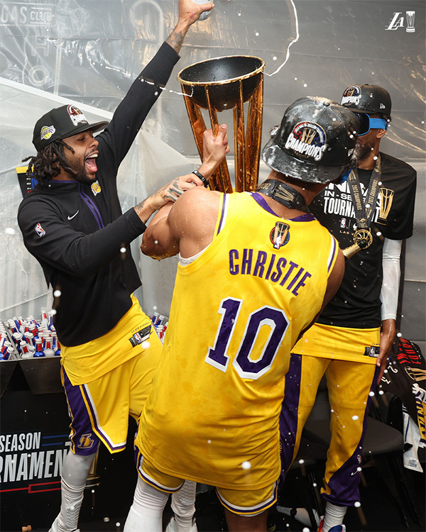 178直播12月11日,湖人在拉斯维加斯击败步行者夺得史上第一个季中赛冠军,詹姆斯第一个举起冠军奖杯疯狂庆祝并且荣获季中赛MVP;夺冠后全队合影,詹姆斯坐在最显眼的位置;赛后更衣室狂欢,詹姆斯狂喷香槟庆祝,拉塞尔等人直接用奖杯喝香槟。