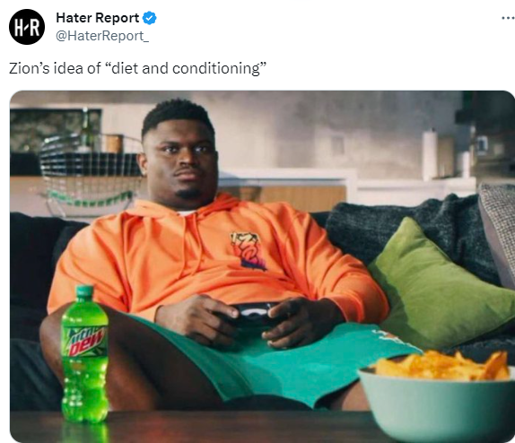 还有球迷表示:锡安看起来像是在比赛前吃了感恩节剩菜,不可接受!
