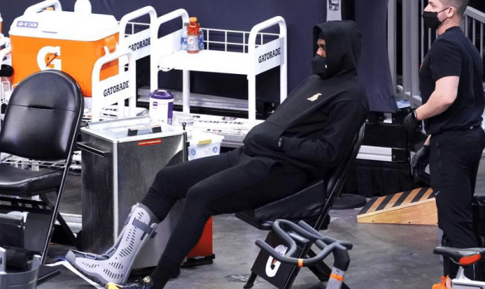 据此前媒体报道,老詹会在5月初复出,从时间上来看,还有一周多。詹姆斯已经可以进行高强度的训练,他跟随湖人来到客场,而且,老詹还更新社媒,晒出了自己在独行侠主场训练后的视频,虽然只有腿部的画面,但可以看出,老詹大汗淋漓,运动量很大,如此看来,詹姆斯的恢复又有新的进展,复出已经进入倒计时阶段。