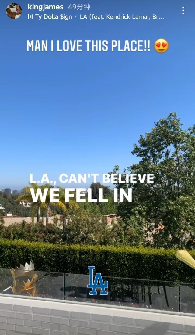 至于詹姆斯在洛杉矶的豪宅,就有三座。目前他已经将其中一处豪宅挂牌出售,现在居住的后院可以看到洛杉矶的美景。风和日丽,詹姆斯也被眼前的美景打动。他写道:“天啊,我爱这个地方!”他还给这段视频配上了“爱上洛杉矶”、“洛杉矶是天使之城”等歌词的歌曲。