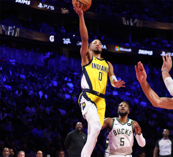 NBA首届季中赛,步行者6胜0负晋级决赛,淘汰赛先后掀翻绿军和雄鹿太狠,他们将在决赛对阵湖人和鹈鹕之间的胜者;哈利伯顿冲击季中赛MVP和冠军,年仅23岁的哈利伯顿不断施展自己的魔法,带领步行者强势来袭,目前步行者12胜8负排在东部第六位。