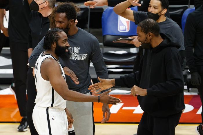 加盟篮网后,31岁哈登已经为篮网出战34场比赛,场均上场37.3分钟能够拿到25.4分11助攻8.7篮板,他是篮网进攻的组织者和发起点;最近一段时间篮网伤病满营,阿德更是因心脏问题宣布退役,现在哈登进入复出倒计时,算是篮网队的一个好消息。