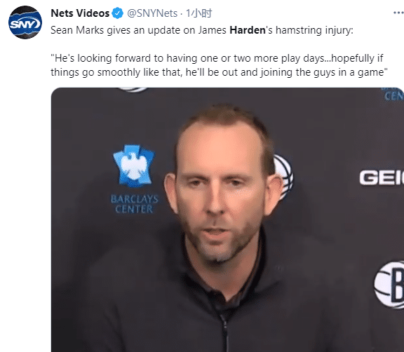 篮网总经理肖恩-马克思透露哈登的伤病康复得很好,他想尽早复出;不过在复出之前,他还需要几天的时间来训练并提升自己的状态,如果一切顺利的话,哈登将会复出和队友们一起参加比赛。
