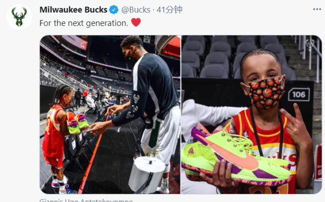 字母哥在离场之前,脱下了自己的球鞋,并向他送给一位小球迷。小球迷则对字母哥再三表达了感谢。对于字母哥来说,这只是一次平常的馈赠。然而对于这位球迷来说,或许他会一辈子都记住这个时刻。雄鹿官方也晒出了字母哥送鞋的照片,写道:“为了下一代!”