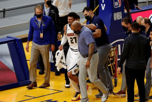 可能也正是因为看到了冲击西部第三的希望,掘金在输给凯尔特人后,才会迫不及待的让右膝盖酸痛的穆雷火线复出,并在和勇士的比赛中打了33分10秒,之后受伤。