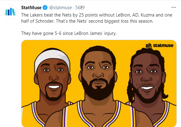 赛后湖人残阵击败篮网以及欧文和施罗德遭驱逐都冲上热搜引热议,排在推特热搜榜前三;美媒直呼湖人摧毁了篮网。