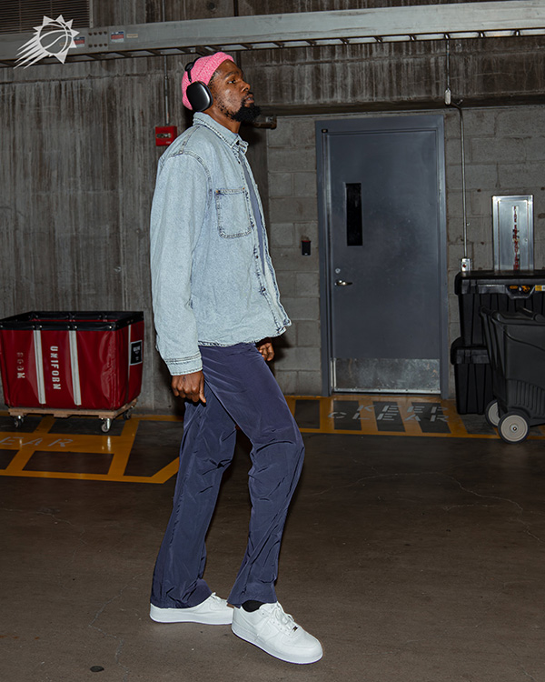 杜兰特佩戴心爱的粉色针织帽入场,布克戴着墨镜十分帅气,今天将是布克本赛季首次对阵湖人,驰援杜兰特大战湖人,戈登预计可以出战。