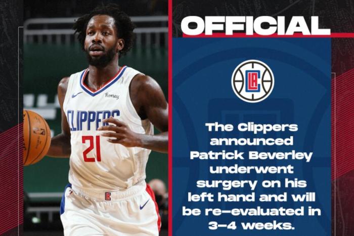 据快船队官方刚刚宣布,球队主力控卫贝弗利因为遭遇骨折,已经接受了手术,并将休战3-4周的时间。