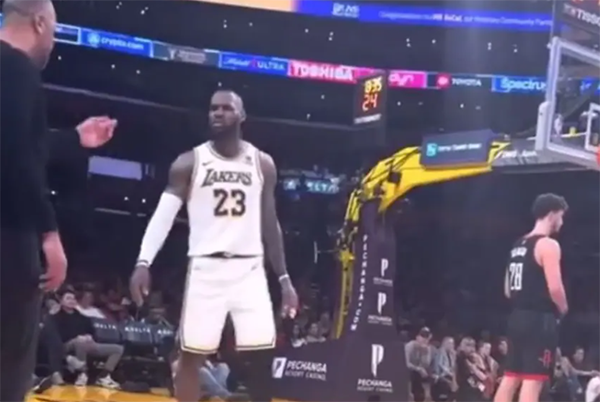 湖人和火箭比赛进行到末节8分35秒,雷迪什撞到伊森的胸部,引发小冲突,雷迪什吃T之后,詹姆斯站在场边和火箭主帅乌度卡当着裁判的面争吵起来,裁判吹罚两人技犯,乌度卡因本场累计两T直接被驱逐离场。