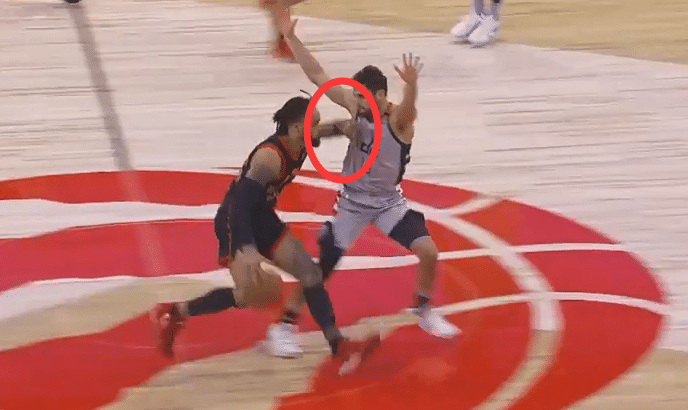最后一次进攻,特伦特三分命中前,裁判出现了严重的漏判,特伦特在带球来到前场的时候,他手上有一个推防守球员的动作,这个动作十分的明显,但是裁判没有任何的吹罚,这是一个很明显的进攻犯规,裁判出现了严重的漏判,这个漏判也直接改变了本场比赛的赛果,如果裁判吹罚了进攻犯规,那么奇才就将赢下本场比赛,虽然说比赛最后要由球员决定胜负,但是特伦特这个进攻犯规太明显了。
