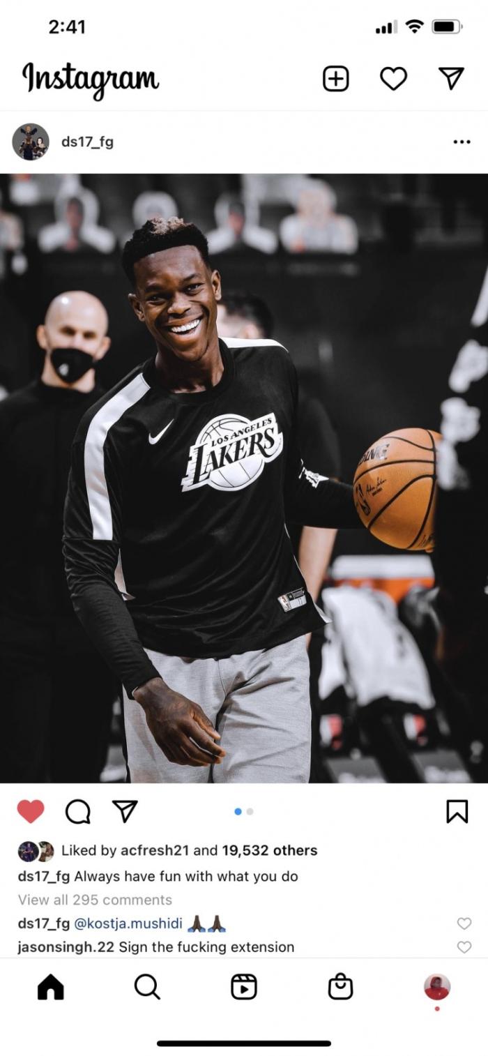 178直播讯北京时间4月4日,湖人球员施罗德在社媒上晒出了自己的赛场照,网友在下面询问施罗德拒绝湖人续约的原因,小黑本人给出了答案!