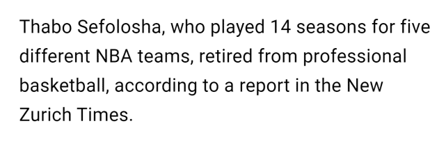 178直播4月1日讯 ,据美媒报道,36岁老将萨博-塞弗洛沙正式宣布退役,他在NBA打了14个赛季,效力过5支球队(公牛、雷霆、老鹰、爵士和火箭),生涯累计出场869场常规赛,场均贡献5.7分3.7篮板。
