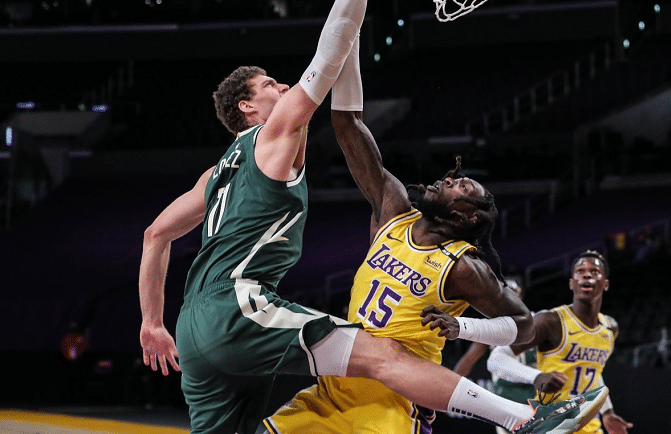 178直播4月1日讯 今天雄鹿和湖人的强强对话结束了争夺,最终雄鹿在客场112-97逆转击败湖人,完成复仇。这场比赛雄鹿在首节一度落后对手两位数,好在霍乐迪、米德尔顿和字母哥爆发,完成翻盘好戏。比赛中德拉蒙德首发迎来了湖人生涯首秀,但比赛中他右脚趾挫伤,因伤离场,这样庄神在自己湖人首秀中出场14分19秒6投2中,罚球2中0,得到4分1篮板2助攻1盖帽的数据。