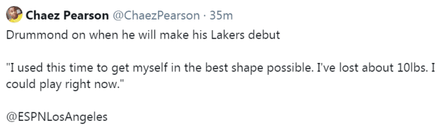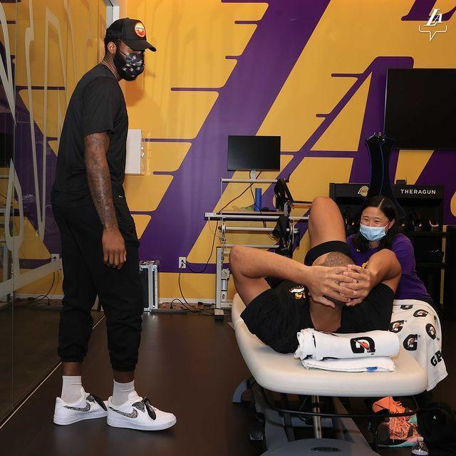 庄神虽然已经有一个多月没打比赛,但他的身材保持得很好。参观完湖人训练馆后,庄神第一次以湖人球员的身份接受媒体采访。在采访中,他透露自己利用这段时间减了大概10磅(9斤左右),已经做好随时上场的准备。