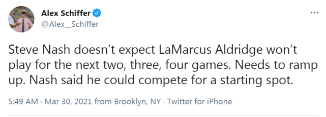 纳什表示篮网很开心能拥有阿德,因为他是技巧型的内线球员,期待他能尽快出现在球场上。不过,考虑到阿德有一段时间没打比赛了,他需要时间来恢复状态。纳什透露,阿德预计会在2-4场比赛后迎来首秀。