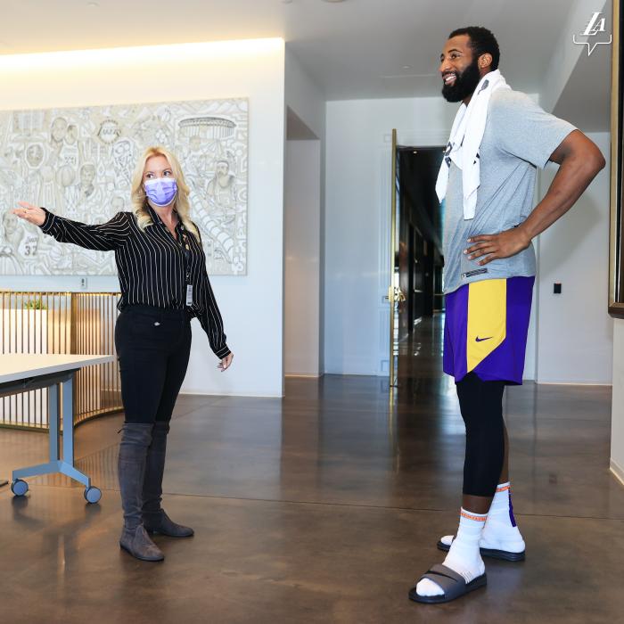 在新闻发布会上,庄神高呼湖人国度,直言:我非常非常兴奋来到这里,加盟湖人是一种荣耀,希望能够帮助湖人再拿一座总冠军;珍妮-巴斯转发庄神对湖人球迷的寄语,并且配上多个开怀大笑的表情。
