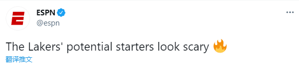 178直播讯 阿德选择加盟篮网,湖人错失阿德却有引援利好,据名记沃纳罗斯基报道,湖人已经成为庄神争夺战唯一领跑者,预计庄神很快就会做出决定;虽然湖人还没和庄神签约,但美媒已经等不及了,ESPN官方晒照并且写道:湖人潜在的首发五虎看起来很可怕。