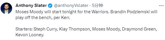勇士连伤三员大将,科尔只能变阵,据报道,今天勇士主场对阵快船,穆迪将顶替维金斯首发,库里、汤普森、格林和卢尼继续首发,波杰姆斯基将替补出战。