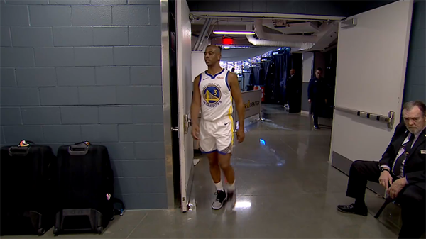 下半场,勇士又遭伤病,第三节还剩40多秒,小佩顿在一次掩护时受伤,捂着小腿十分痛苦,在场边一瘸一拐,见状,科尔赶紧喊暂停,小佩顿离场返回更衣室,在球员通道中,小佩顿十分沮丧。