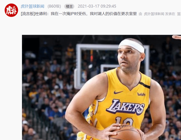 他解释了自己是为何受伤的,因为球迷调侃他“挥毛巾也受伤?”毕竟他截止到现在赛季只出场11次,场均不足7分钟,基本没怎么打球!杜德利表示“在一次掩护中受伤了”然后贪大自己的价值表示“我对湖人的价值不是打球,我的价值是在更衣室,在球队大巴和包机上。在观看比赛录像时,我的角色不会发生变化,但是显然,他不能像往常那样,和指导那些无法上场的球员进行训练了。”