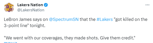 赛后谈到惨败,詹姆斯表示:湖人要想有竞争力,需要做出很大的改变;我们这场被对手的三分杀死了,我们做了我们应该做的防守覆盖,但他们命中了很多球;这必须要肯定76人所做的事。
