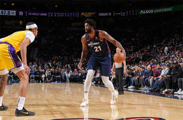 联盟两大中锋对决,浓眉仅仅在开场前几分钟略占上风,之后身背2犯的恩比德接管比赛,带队一波20-2奠定赢球局面,尤其是第三节,恩比德单节独砍13分7篮板4助攻,犹如约基奇一般完胜浓眉,多方面压制浓眉;湖人防不住恩比德,恩比德不仅统治禁区,而且为队友创造三分投射机会,这也是湖人一直被压制以及溃败的重要原因。