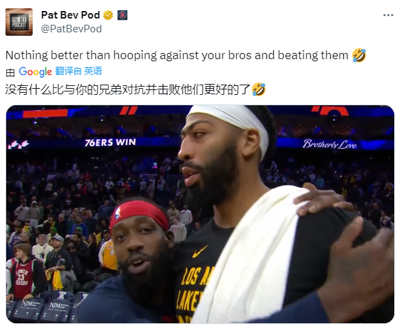 贝弗利的播客官推转发这一幕并且写道:没有什么比与你的兄弟对抗并击败他们更好的了。