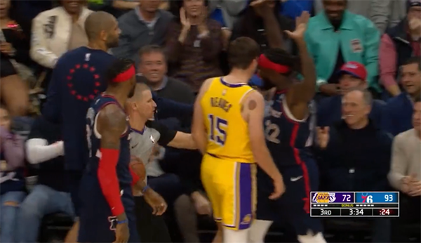 在76人对阵湖人第三节3分多钟,贝弗利强硬防守里夫斯,后者掉球险些失误,之后贝弗利和考文顿包夹里夫斯,最终里夫斯被撞出边线出现失误;贝弗利冲撞挑衅里夫斯,导致双方发生口角互喷了几句,贝弗利高举双手,裁判推开里夫斯,这小摩擦才没有升级到冲突。
